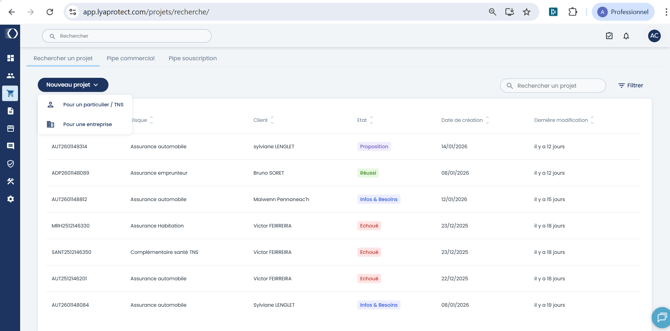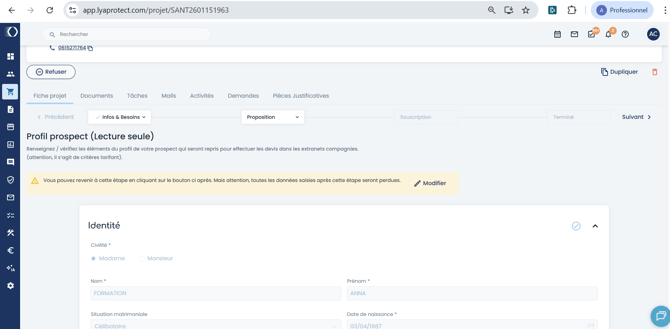 Prérequis : Avoir un client créé dans la base de données et disposer des informations sur sa situation actuelle.