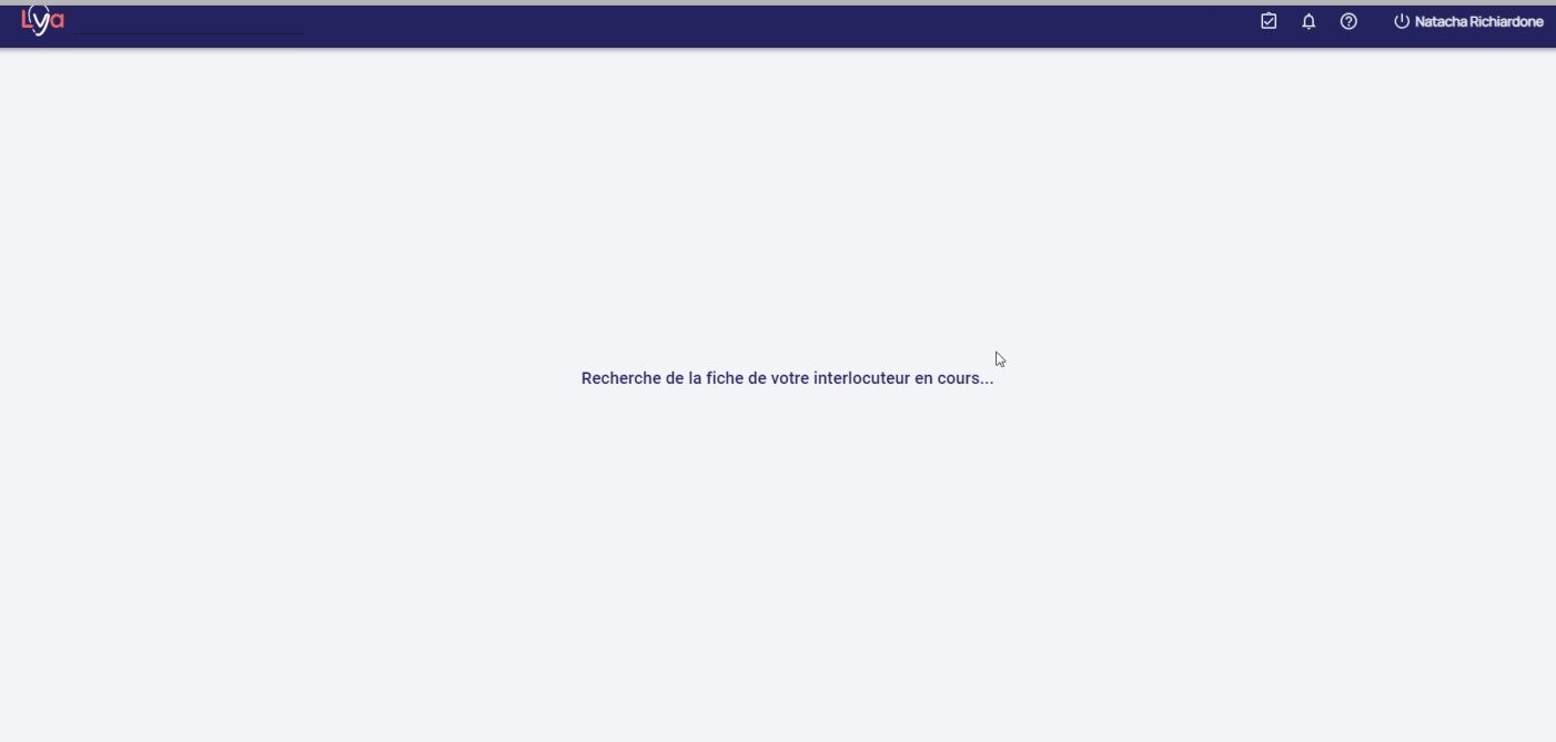 A la réception de l'appel, Lya ouvre un nouvel onglet* et vous informe qu'il recherche le contact :