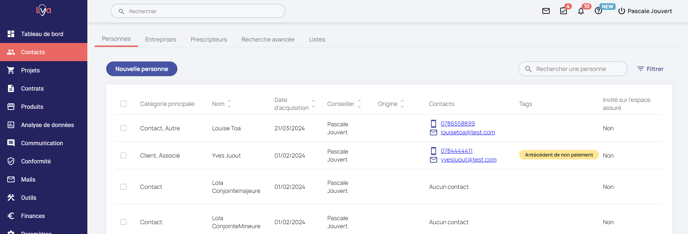Identifier d'un seul coup d'œil vos prospects ou clients individuels ou collectifs dans la liste de vos contacts grâce à un tag visuel.