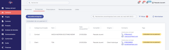 Par exemple, en cas d'utilisation de l'outil Efficiale lié à la plateforme, les tags relatifs à la conformité peuvent être affectés sur des fiches contacts si une alerte est remontée ou retirés d'une fiche contact en cas d'alerte levée.