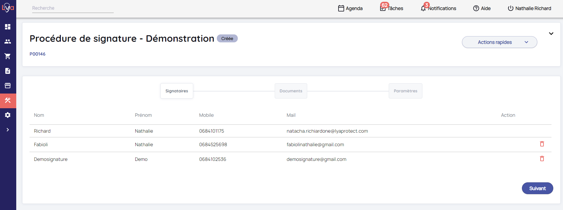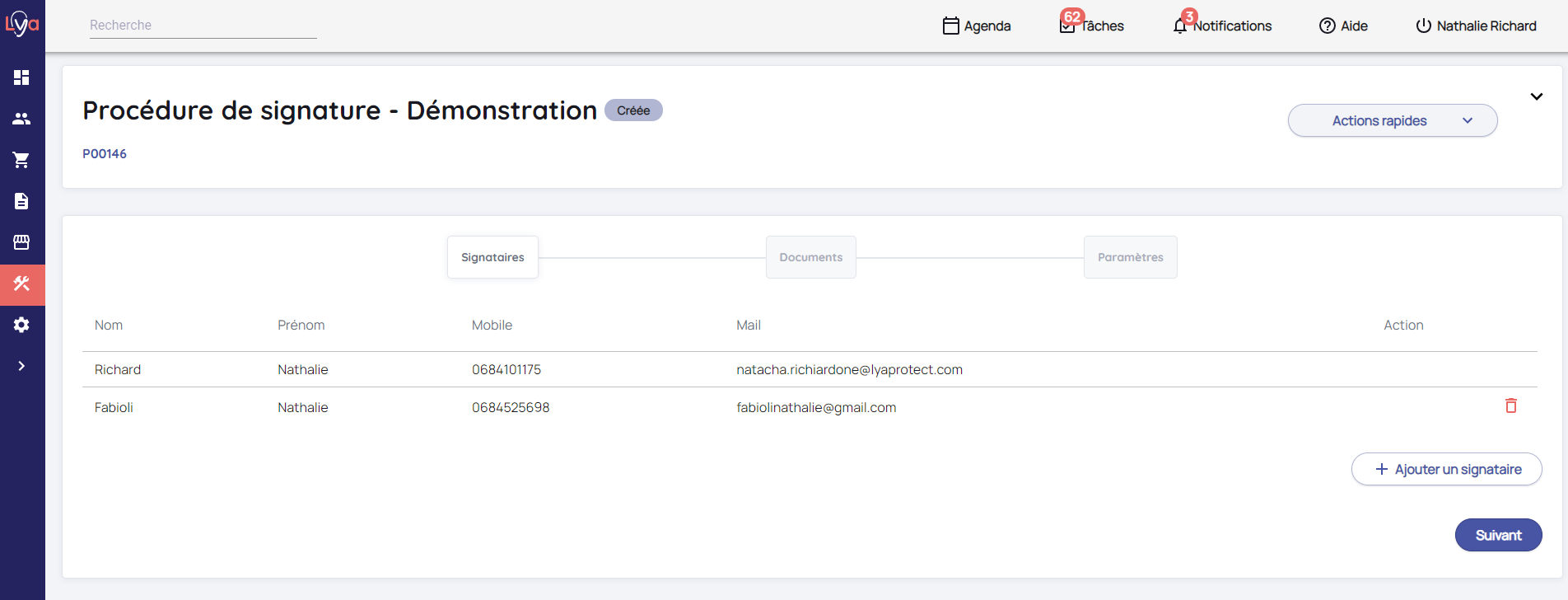 Lya vous permet de créer des procédures avec maximum 3 signataires.