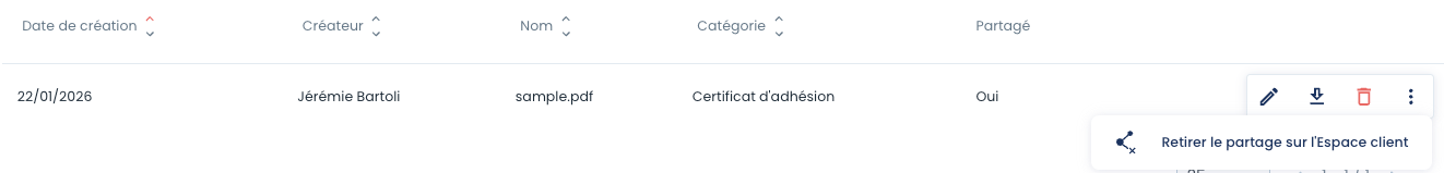Par défaut, tous les documents ajoutés sur un contrat sont automatiquement partagés et visibles par le client sur son espace.