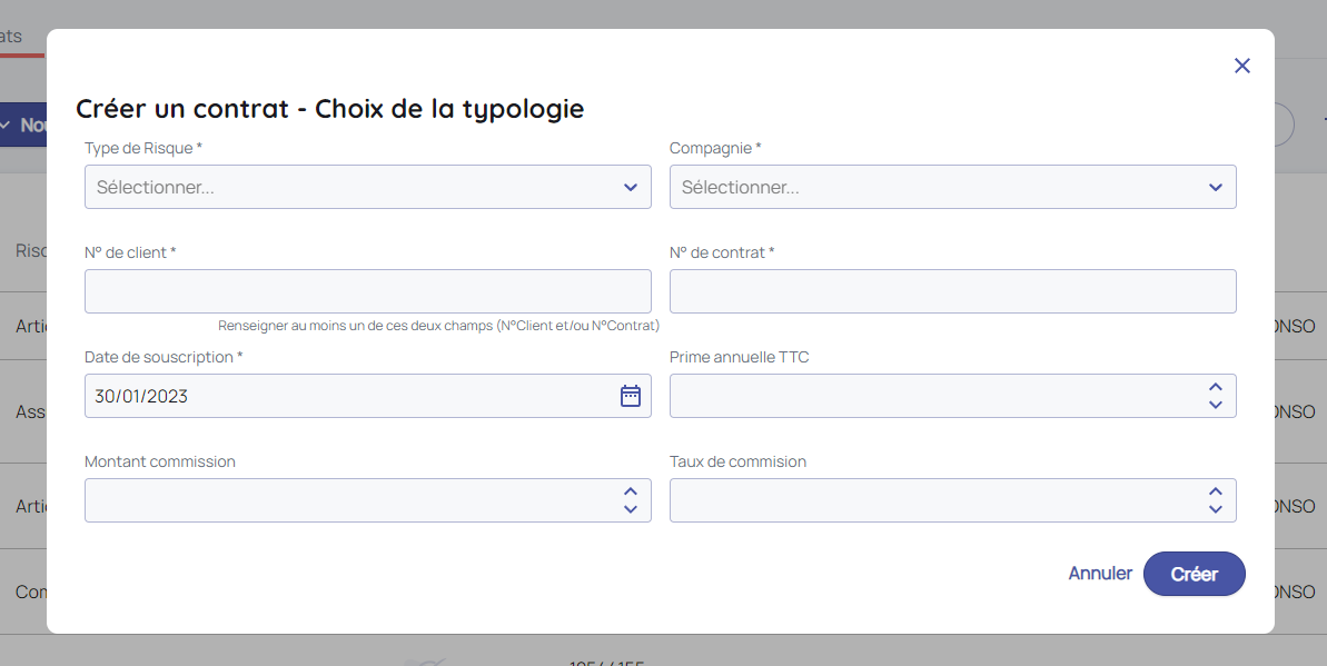 Le contrat se créé automatiquement dans la fiche du client sélectionné.