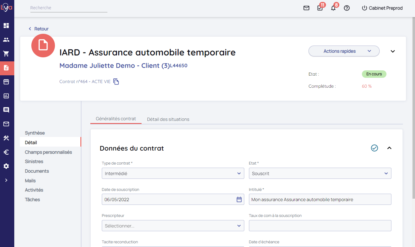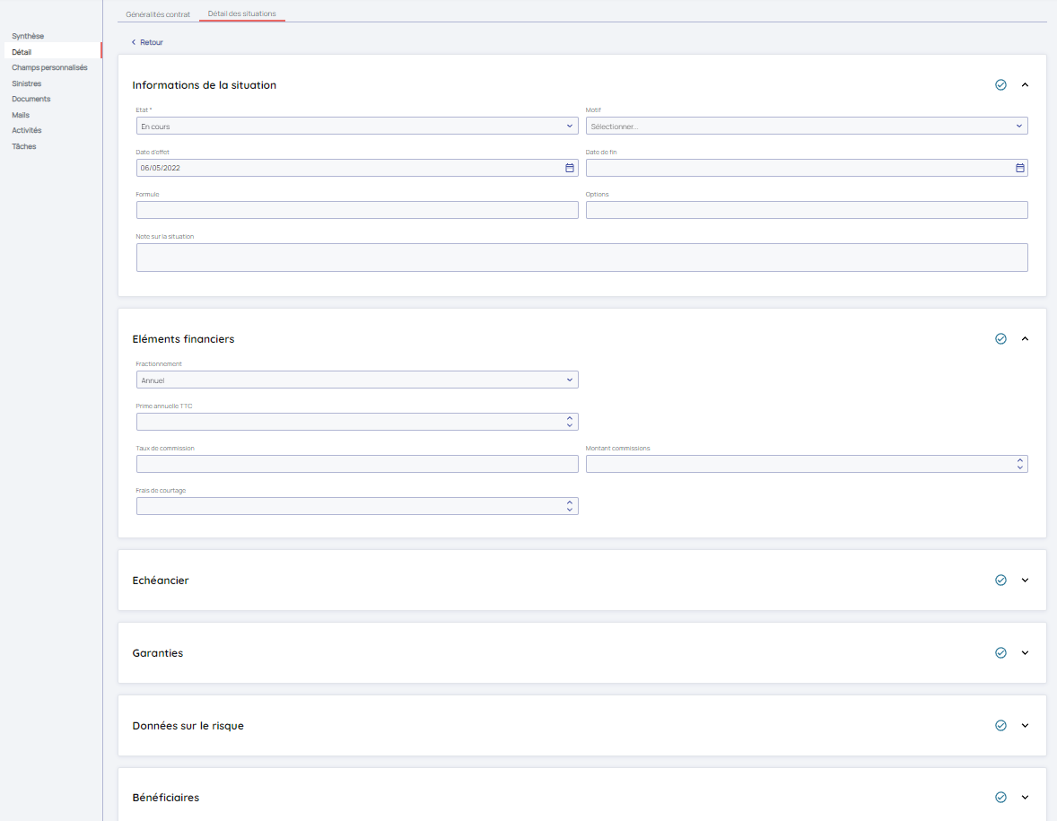 Pour enrichir les données du contrat, cliquez sur l'onglet "Détail" .