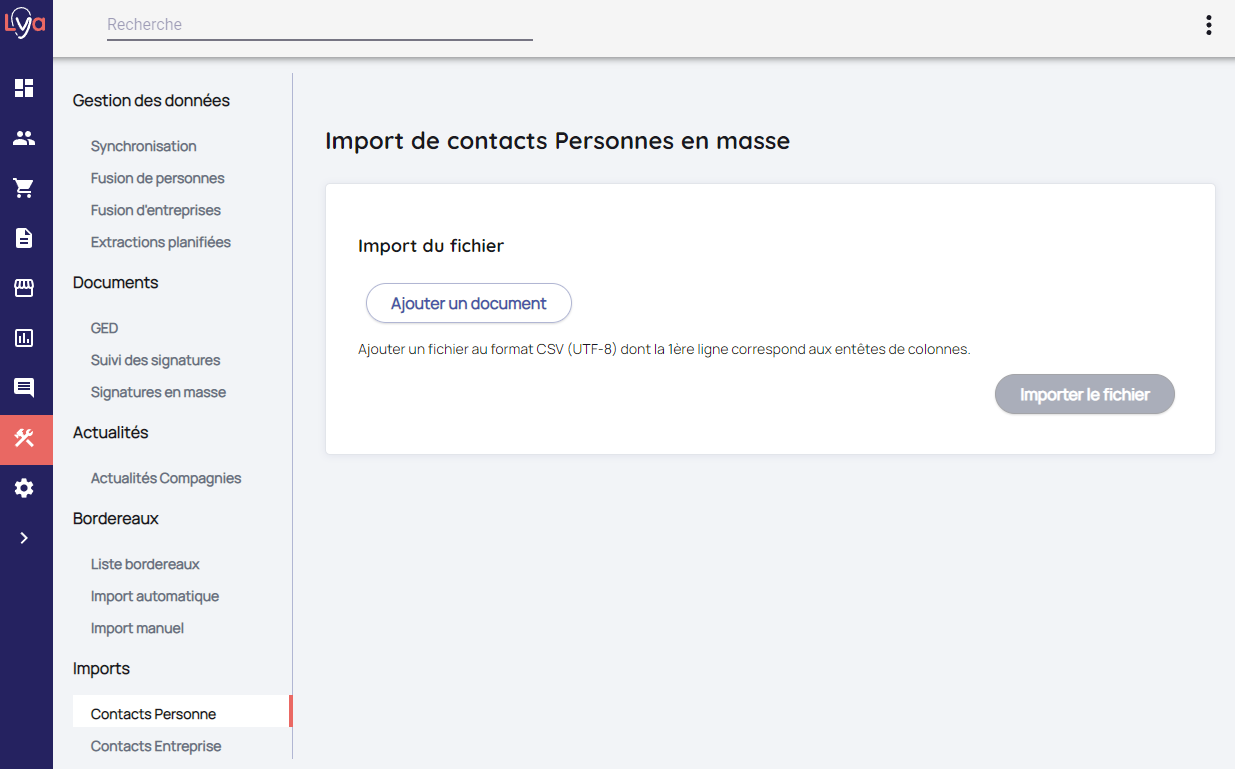 Importer des clients en masse, consiste à intégrer dans LyaCourtage des fichiers clients d'autre CRM dans la base de donnée, afin de retrouver tous vos clients sur notre plateforme.