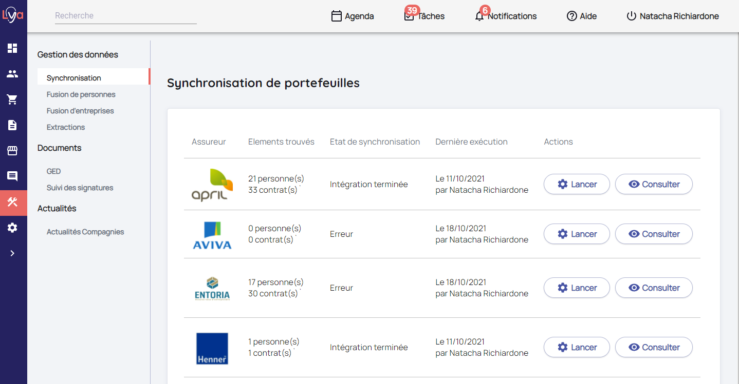 - Effectuer une synchronisation de vos portefeuilles directement sur notre plateforme dans le Menu "Outils" > Gestion des données, Synchronisation. Pour savoir comment synchroniser vos portefeuilles, reportez-vous à l'article Synchronisation de masse.