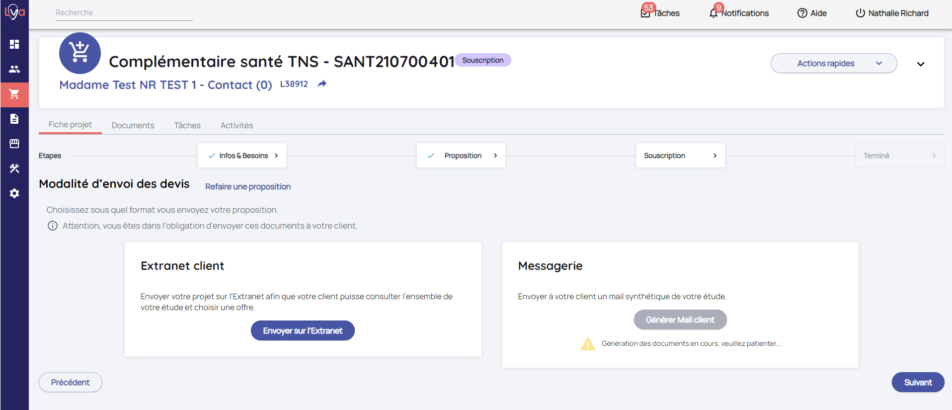 En validant, votre client sera notifié par email et dans l'Extranet Client que vous souhaitez lui communiquer l'état d'avancement de son projet.