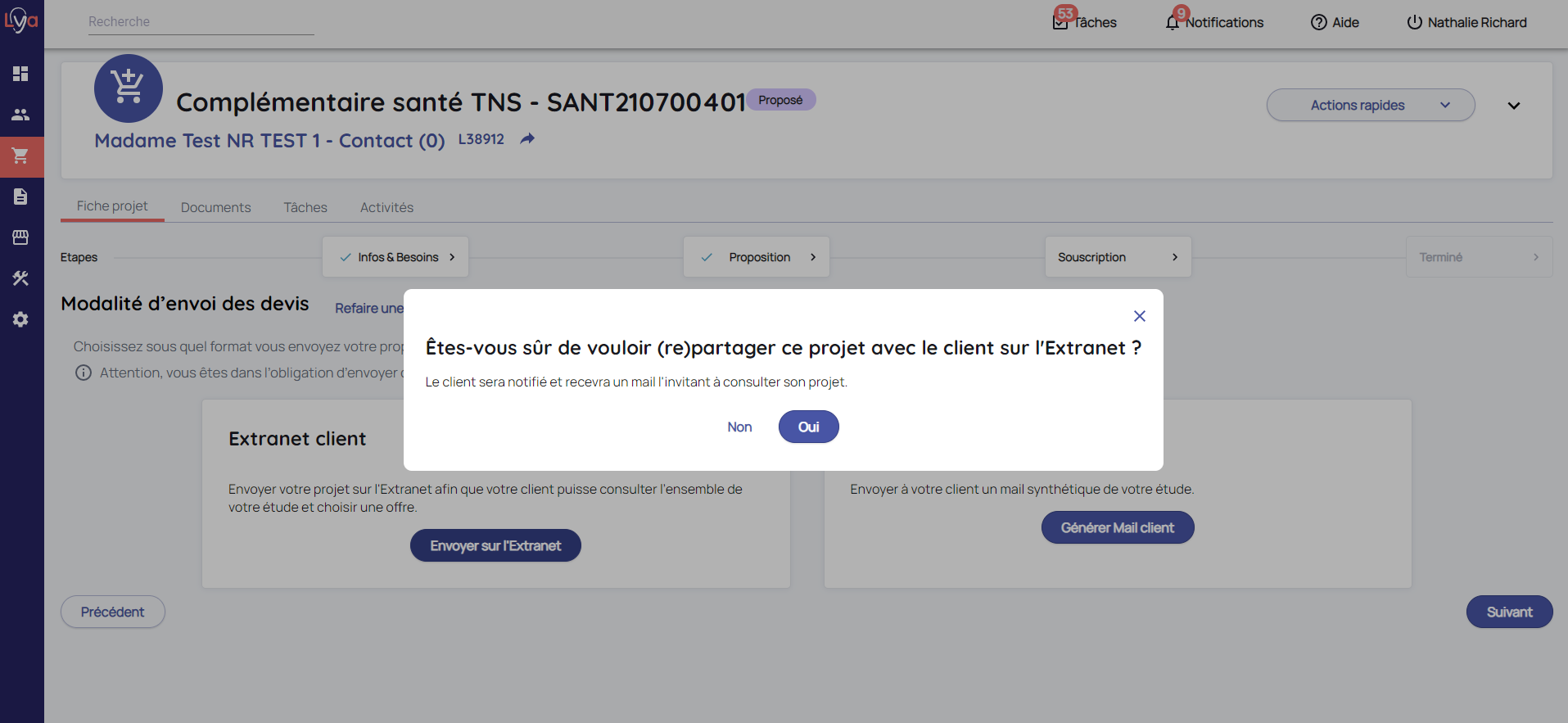 Confirmer que vous souhaitez partager le projet sur l'Extranet Client.