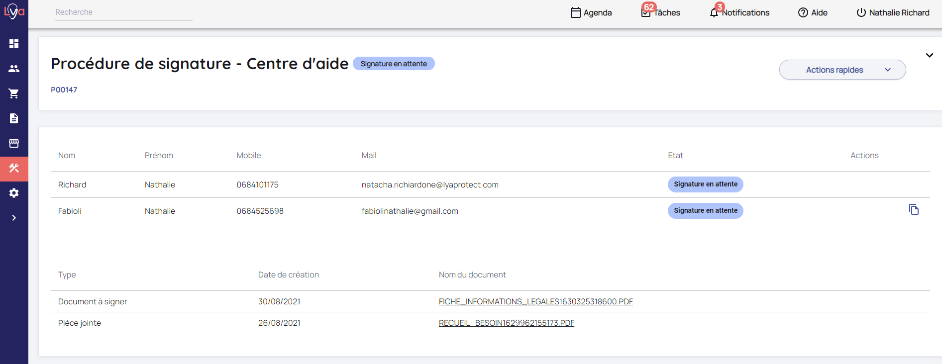 Lya vous permet de renvoyer simplement le lien de signature à votre client en cas d'égarement.