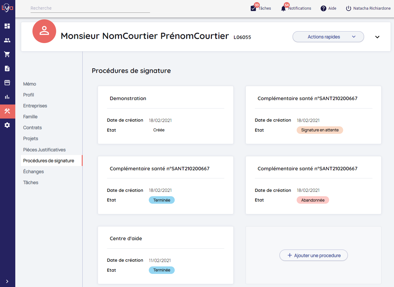 La fiche de votre contact s'affiche, allez sur l'onglet "Procédures de signature".