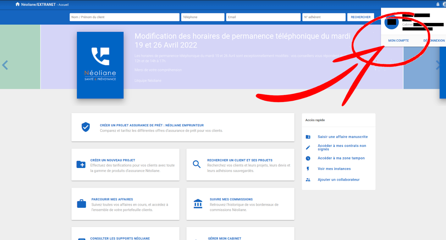 1. Connectez-vous à votre Extranet Néoliane.