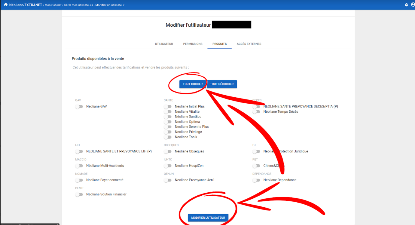 Comment s'assurer que les produits Néoliane sont bien ouverts dans votre extranet compagnie ?