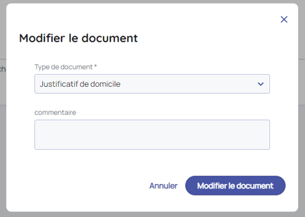Une fenêtre apparaît alors vous permettant de modifier le type de document ou le commentaire. Il faut ensuite cliquer sur enregistrer pour prendre en compte les modifications.
