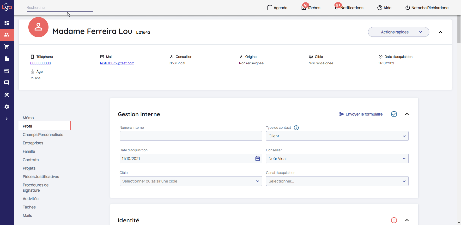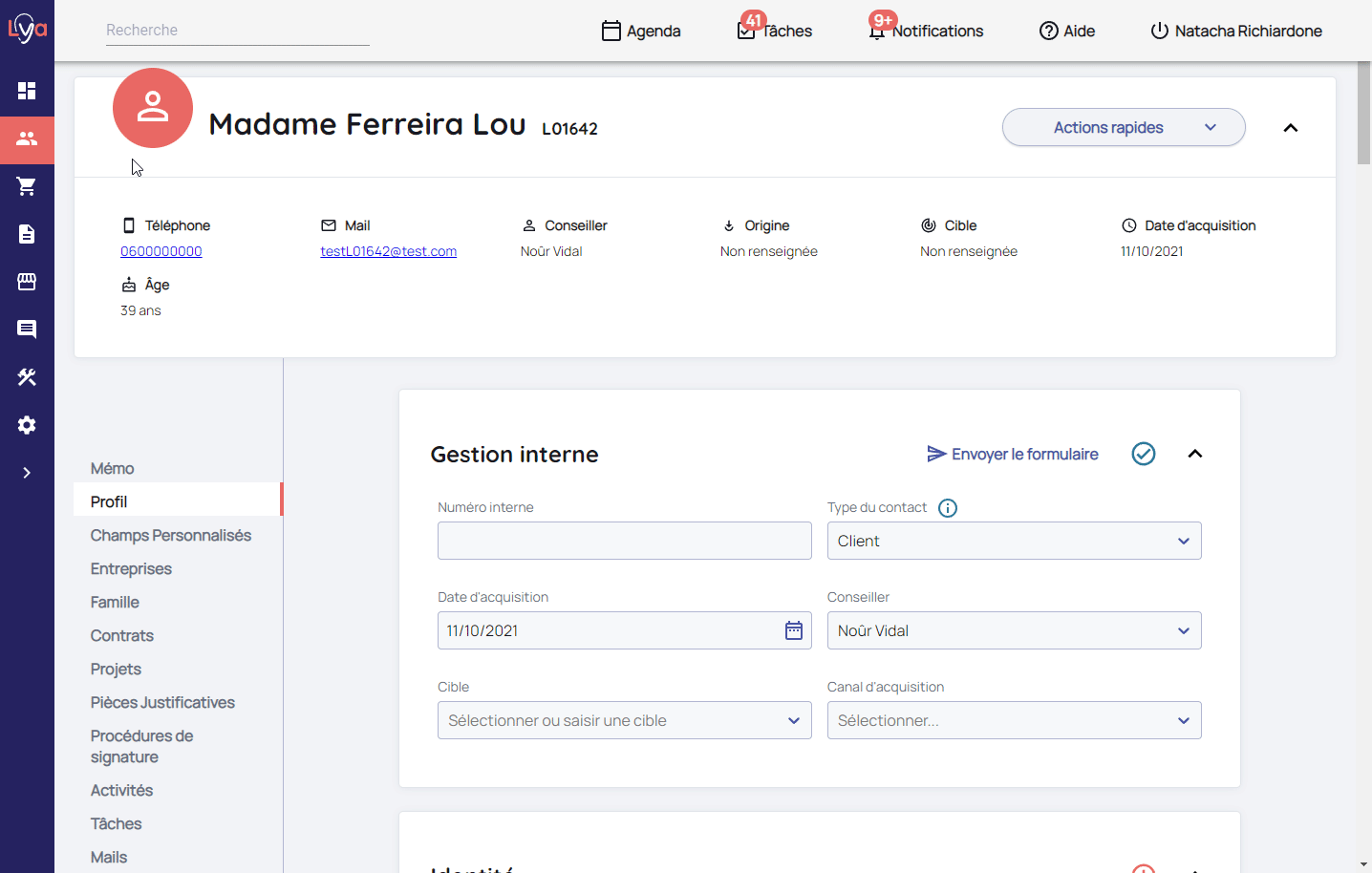 Depuis Lya, vous pouvez contacter rapidement vos clients par téléphone grâce au click and call ou par email via le mailto.