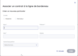 Une fois la personne (physique ou morale) identifiée, il faut associer la ligne du bordereau à un contrat de cette personne
