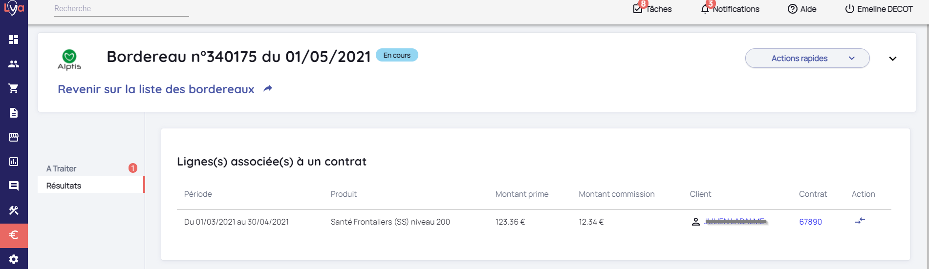 Contrôler et associer les lignes d'un bordereau aux contrats en portefeuille