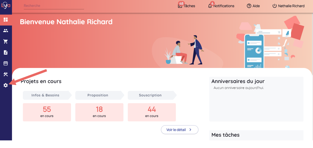 - Conseiller : l'utilisateur accède à toute l'application mais ne peut pas administrer Lya Courtage
