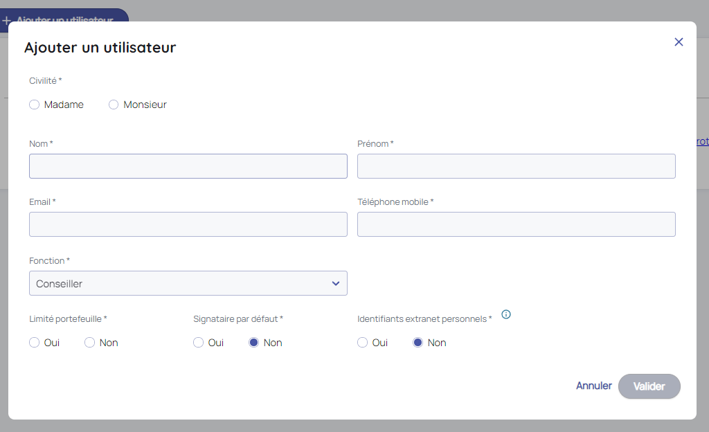 Pour ajouter un nouvel utilisateur, il est nécessaire de cliquez sur le bouton "Ajouter un utilisateur"