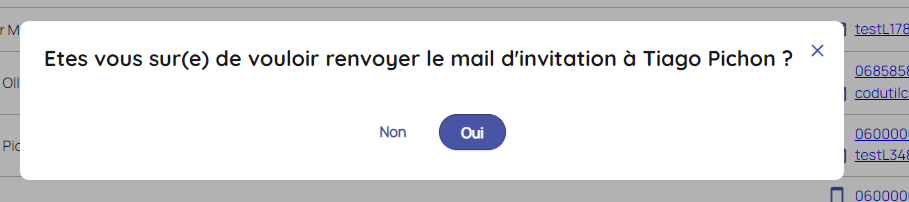 Une fenêtre s'ouvre afin de confirmer le renvoi du mail à l'utilisateur.