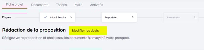Je souhaite modifier l'étape précédente de mon projet, corriger une saisie, modifier un devis ou changer de type de signature, sans être en lecture seule