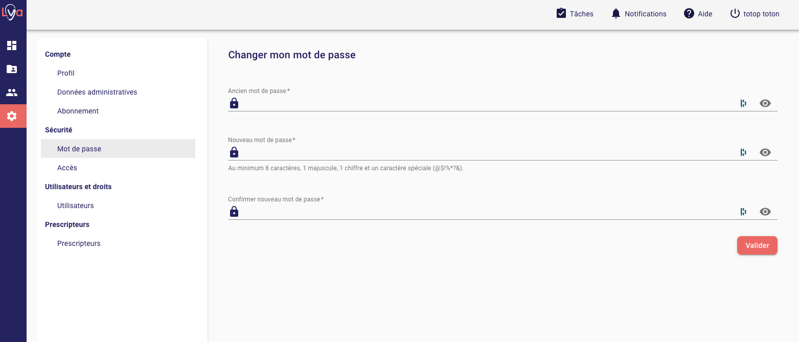 Vous pouvez alors modifier votre mot de passe. il faut d'abord saisir l'ancien mot de passe puis choisir son nouveau mot de passe dans le respect des règles de sécurité: