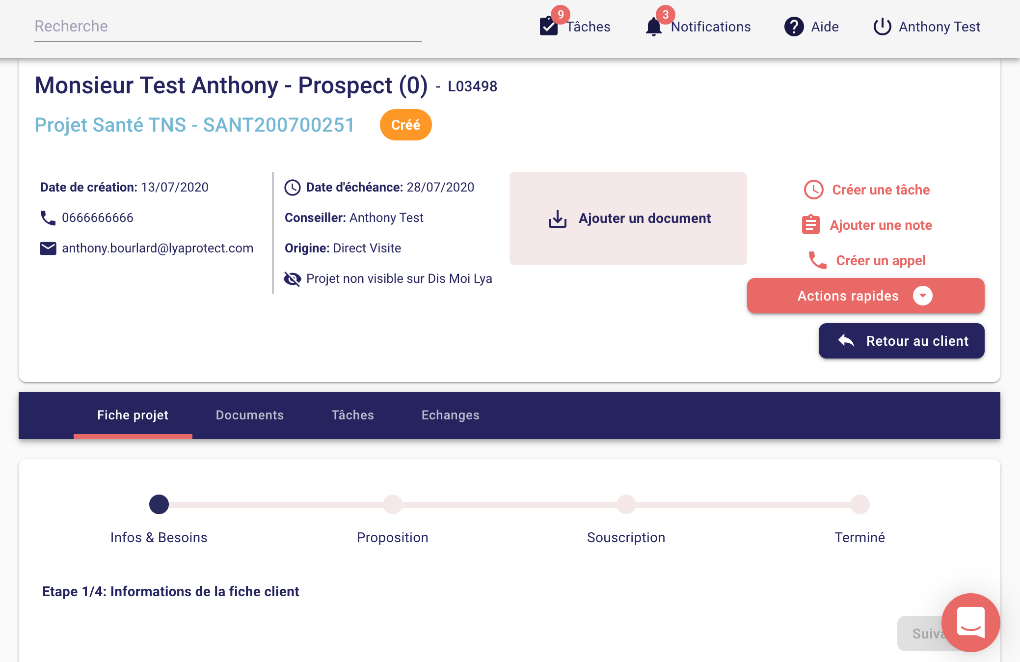 Il se constitue de 4 étapes: le recueil d'infos et besoins, la proposition du projet, du devis, et la phase de complétude de dossier qui précède la souscription et enfin la clôture du projet par la souscription compagnie.
