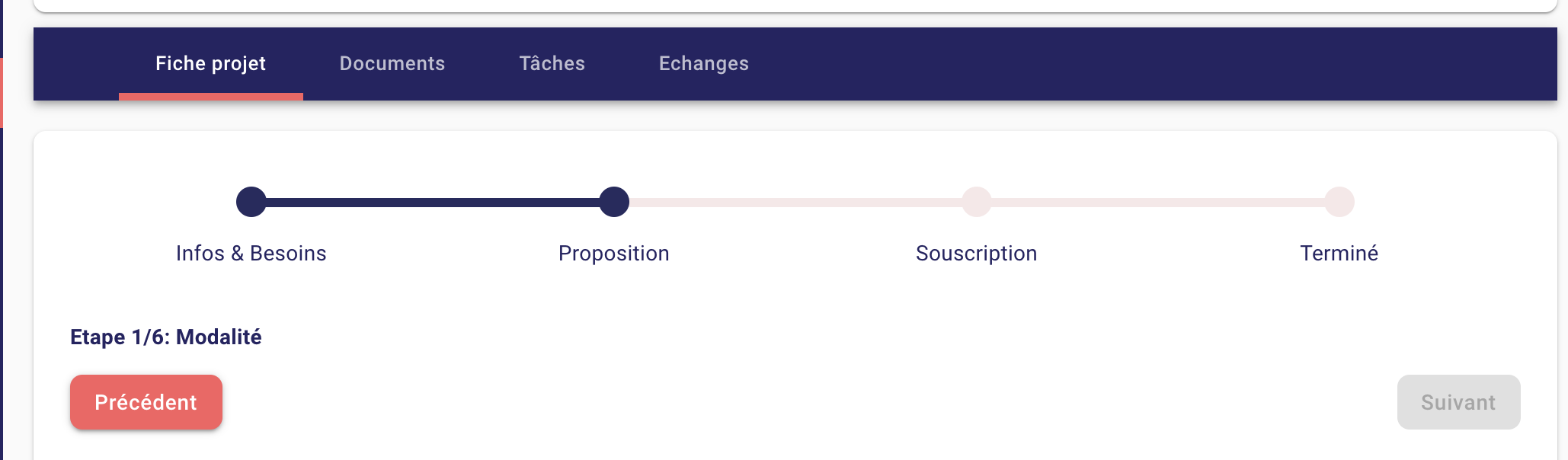 Le fil d'Ariane vous indique votre progression dans le parcours projet.