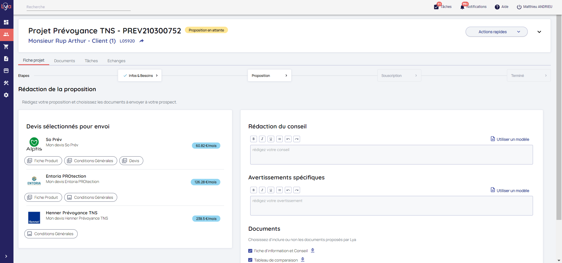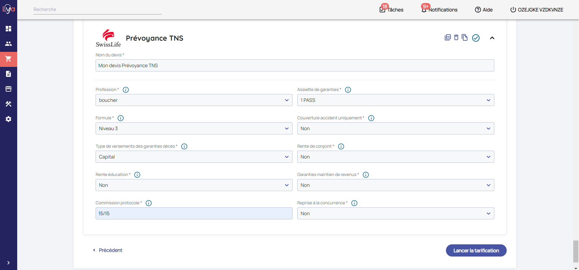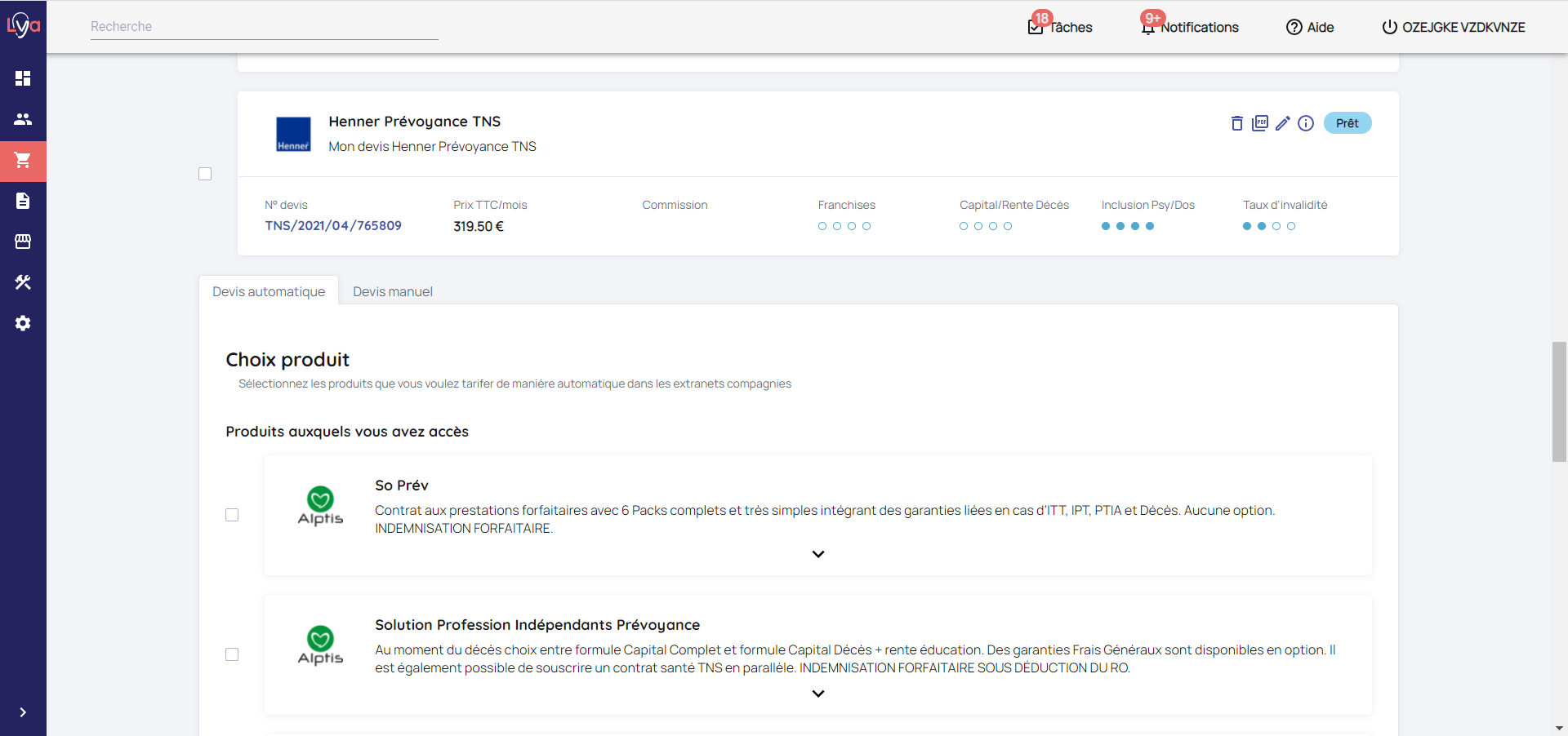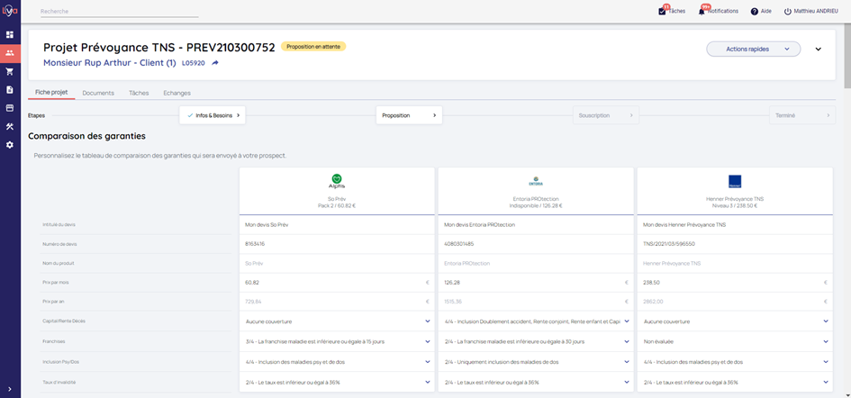 Lya Courtage vous permet de faire des projets Prévoyance TNS pour vos prospects / clients.
