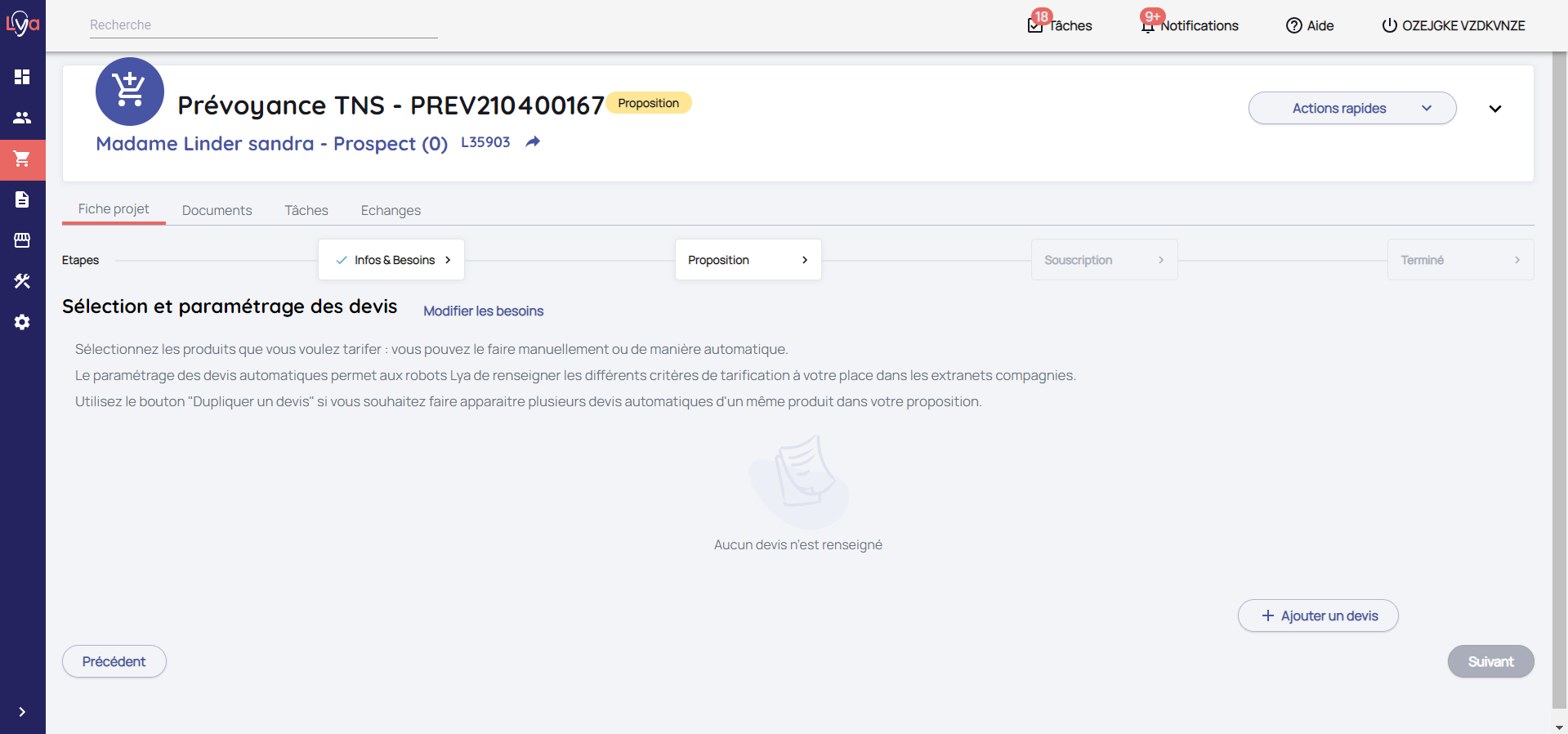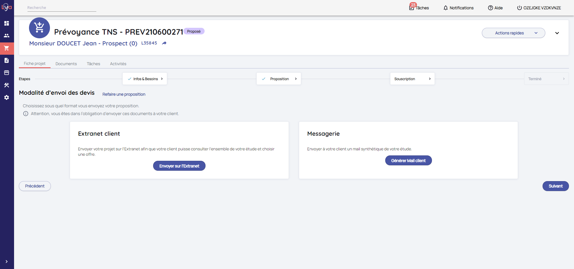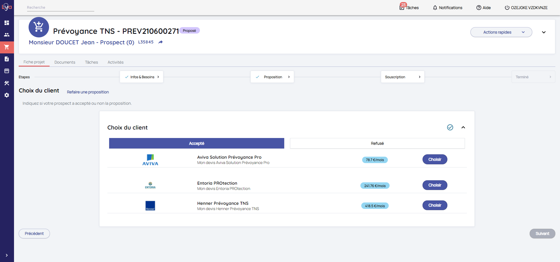 Lya Courtage vous permet de faire des projets Prévoyance TNS pour vos prospects / clients.