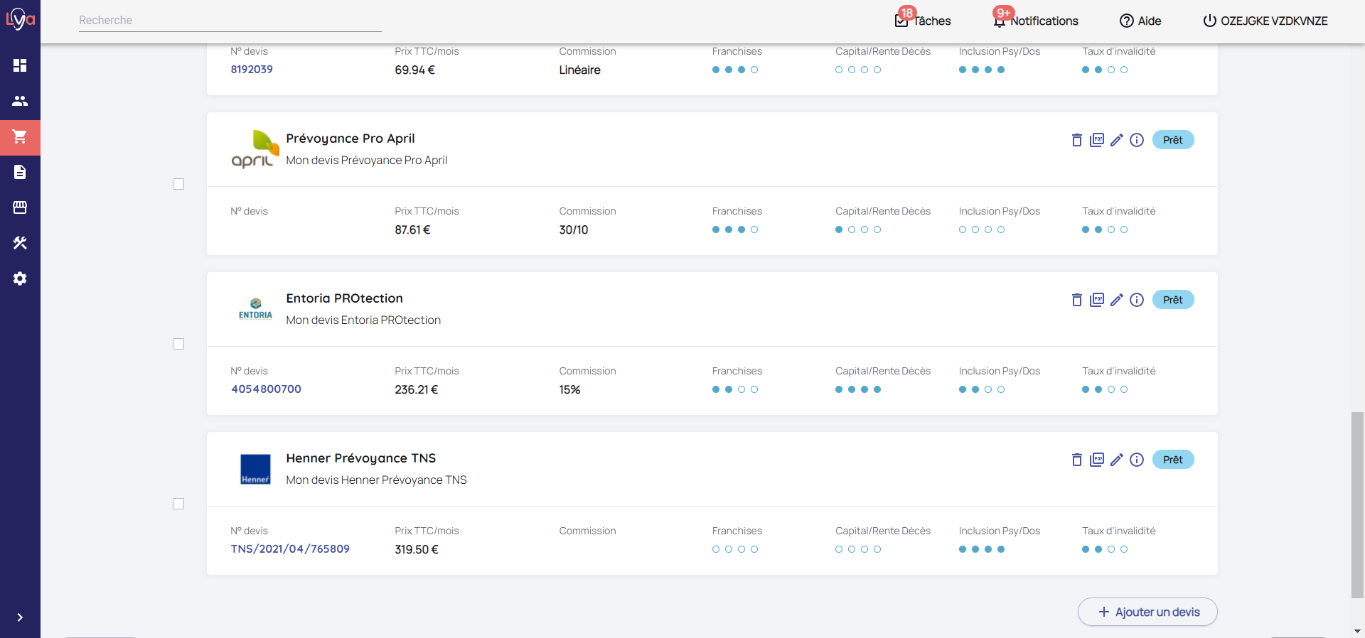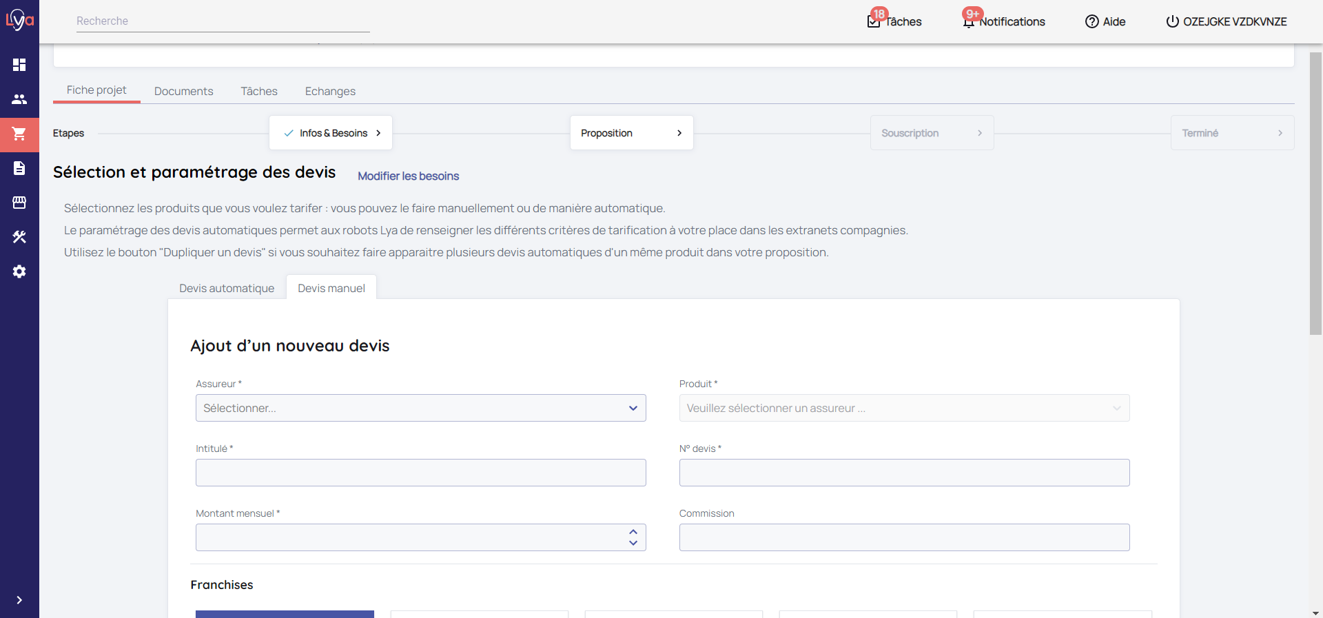 Les robots Lya savent saisir des formulaires et récupérer les devis. En revanche, ils ne savent pas et ne sont pas autorisés à mettre à jour les données si vous modifiez directement sur l'extranet de la compagnie le devis. C'est important de penser à recharger à manuellement les devis et les informations du devis (Formule, prix, commissions).