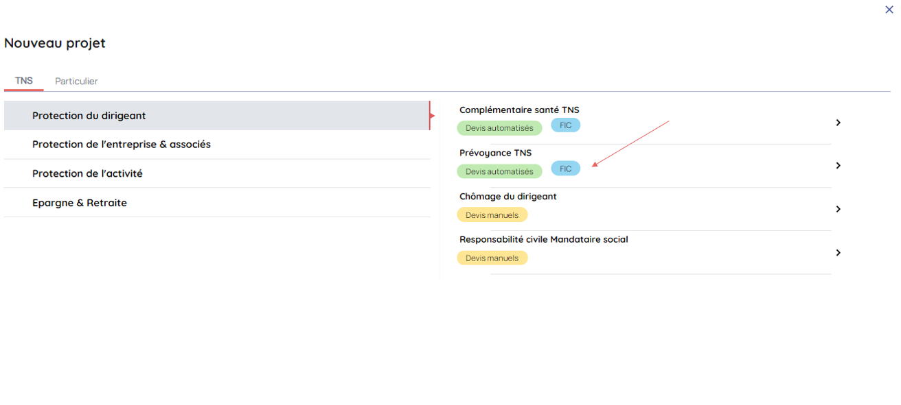 Choisir un projet Prévoyance TNS