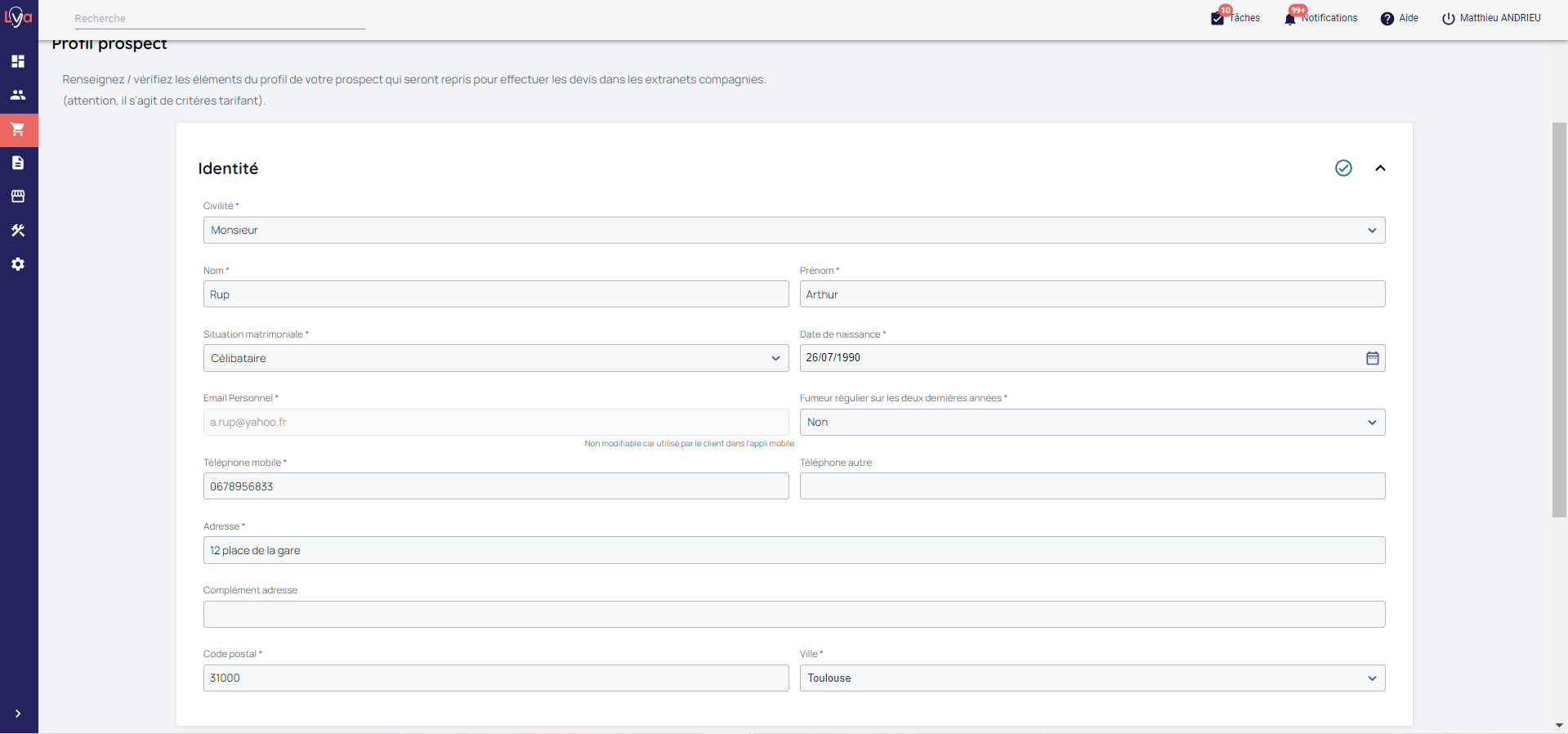 - L'identité du prospect :