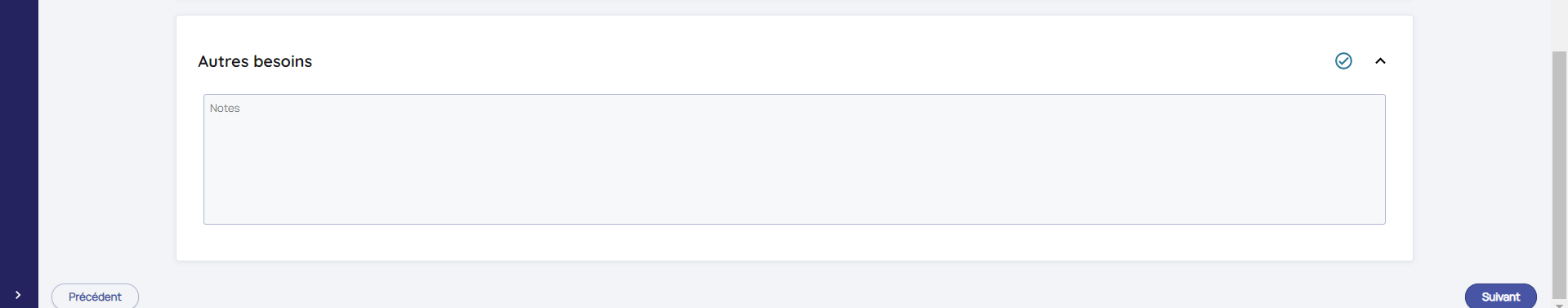 Vous pouvez renseignez d'autres types de besoins dans l'encart prévu à cet effet :