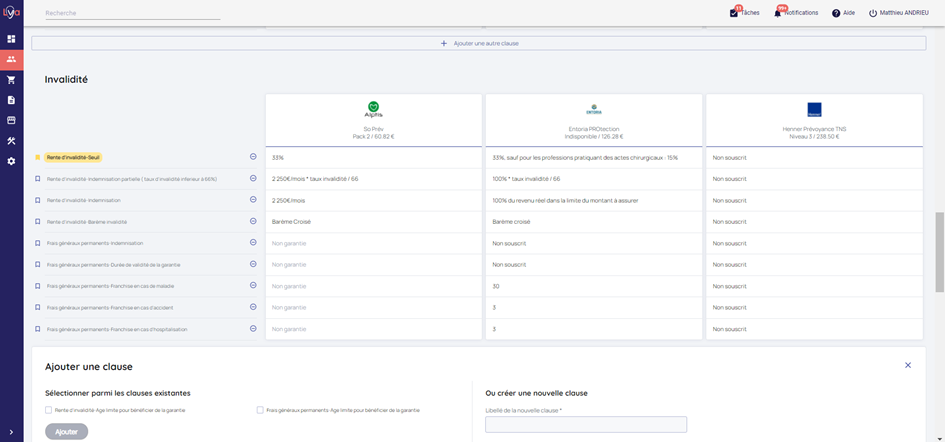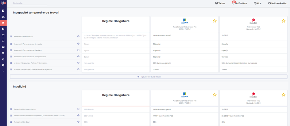Dans cette étape, visualisez et comparez les garanties des devis sélectionnés et du contrat actuel du prospect, si vous en avez sélectionné un.