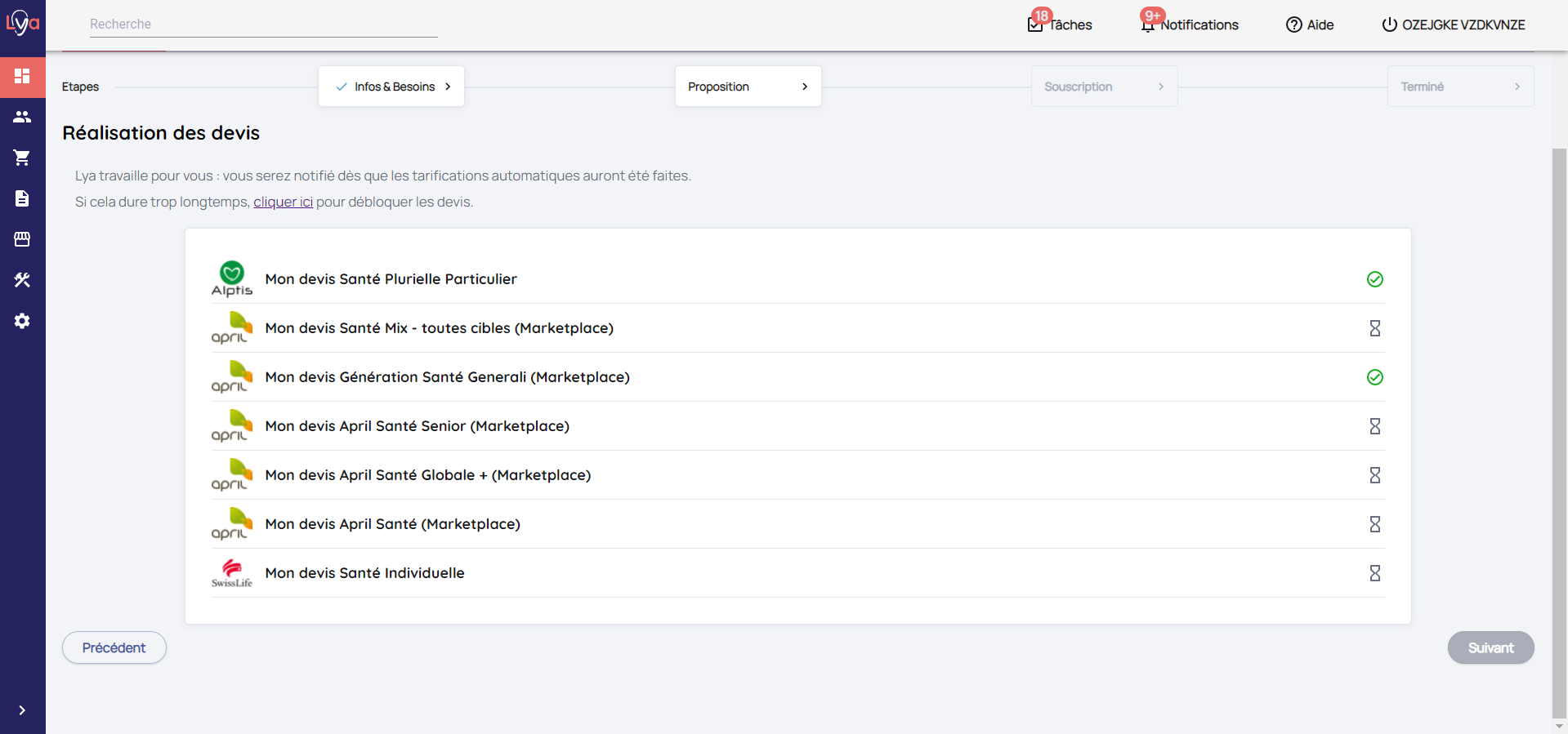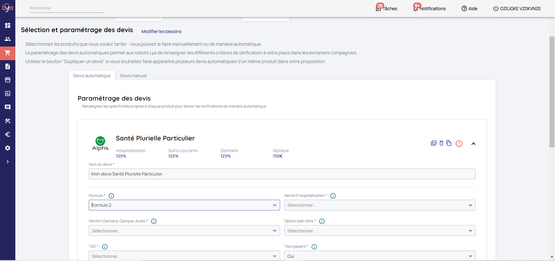 Les robots Lya savent saisir des formulaires et récupérer les devis. En revanche, ils ne savent pas et ne sont pas autorisés à mettre à jour les données si vous modifiez directement sur l'extranet de la compagnie le devis. C'est important de penser à recharger à manuellement les devis et les informations du devis (Formule, prix, commissions).