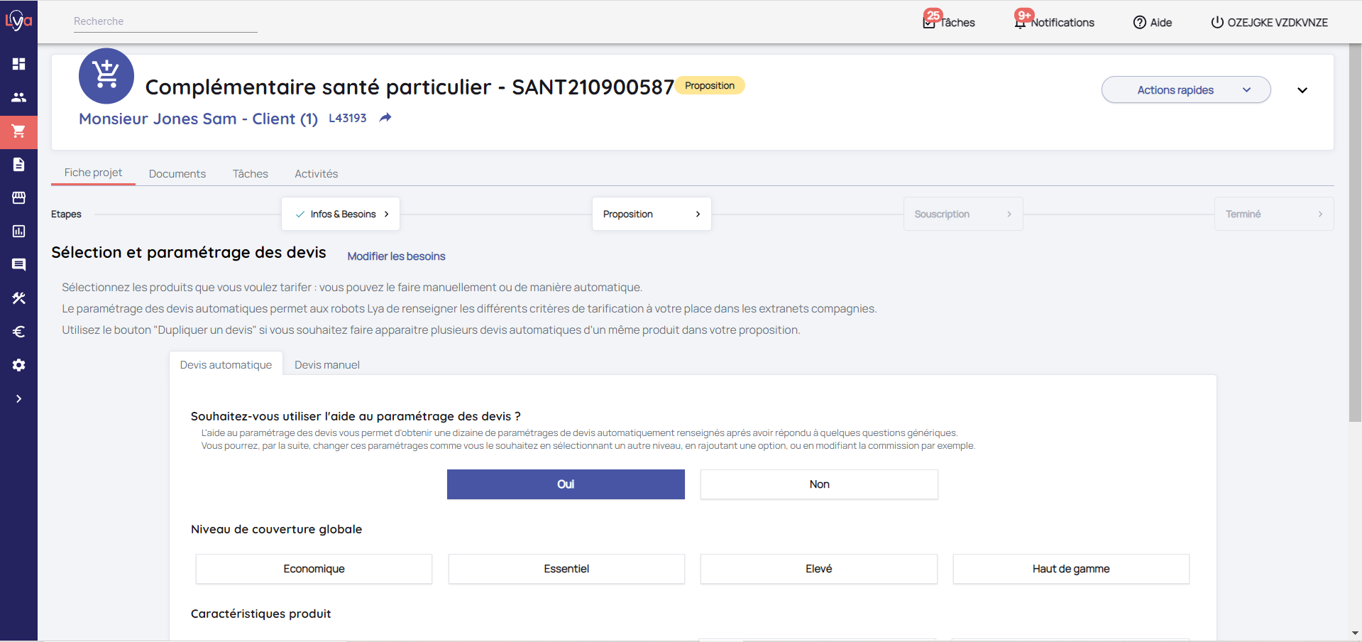 Proposition - Sélection et paramétrage des devis / Devis automatique - Choix produit