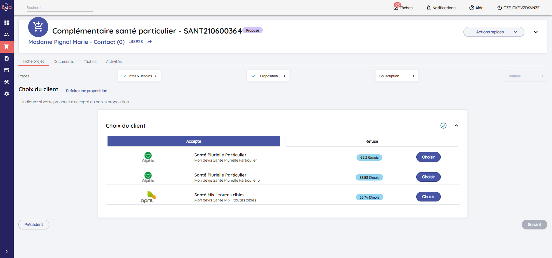 Lya Courtage vous permet de faire des projets Santé Particulier pour vos prospects / clients.