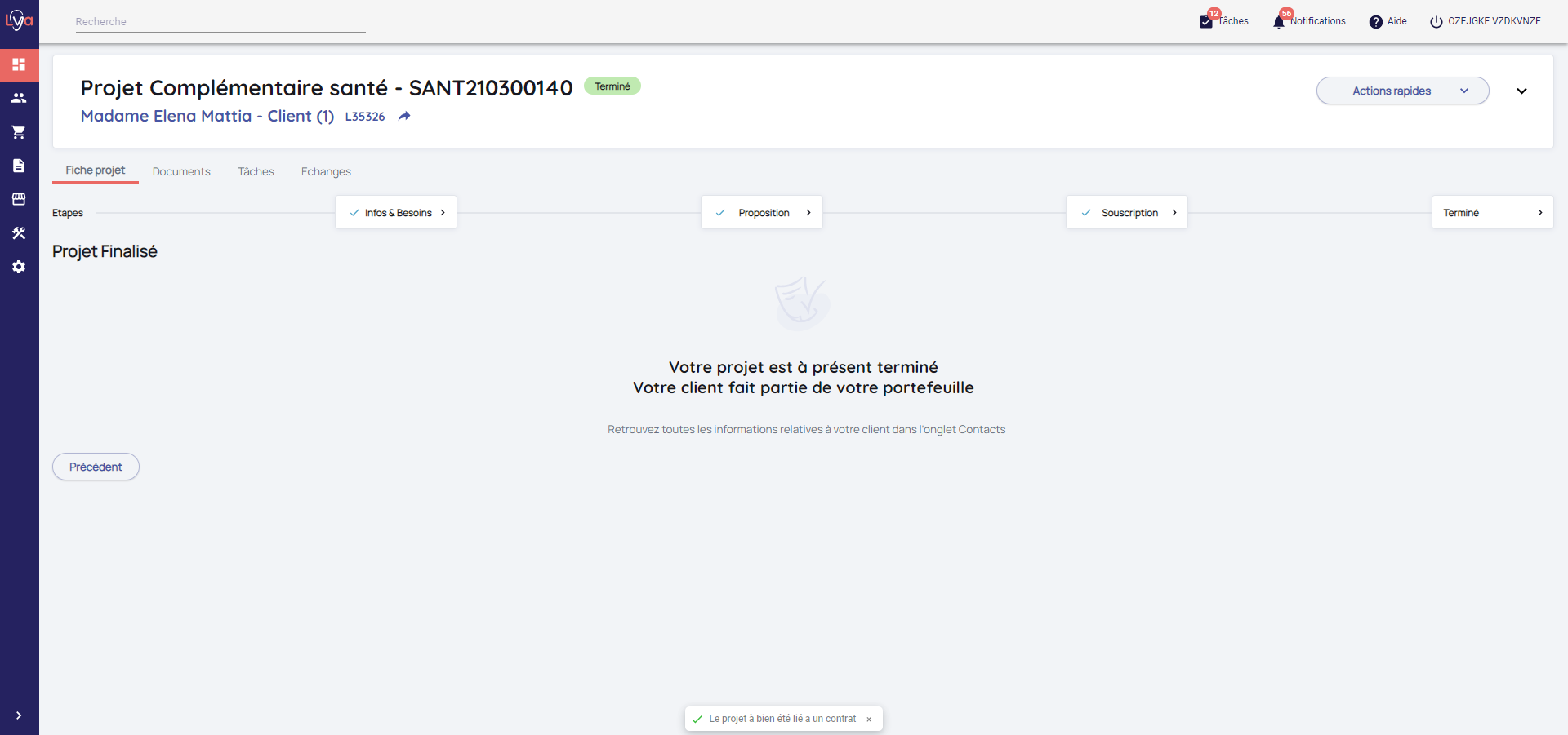 Votre projet est désormais transformé en Contrat disponible dans l'onglet Portefeuille.