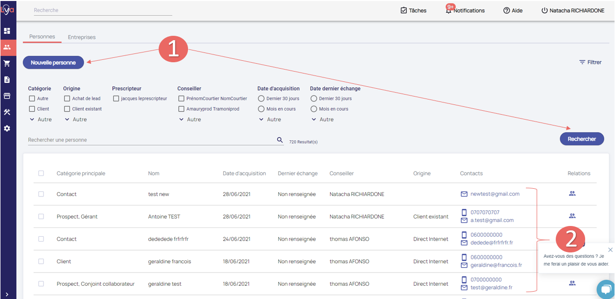 Grâce aux différents filtres proposés, vous allez pouvoir restreindre la liste des personnes affichées en fonction de vos filtres.