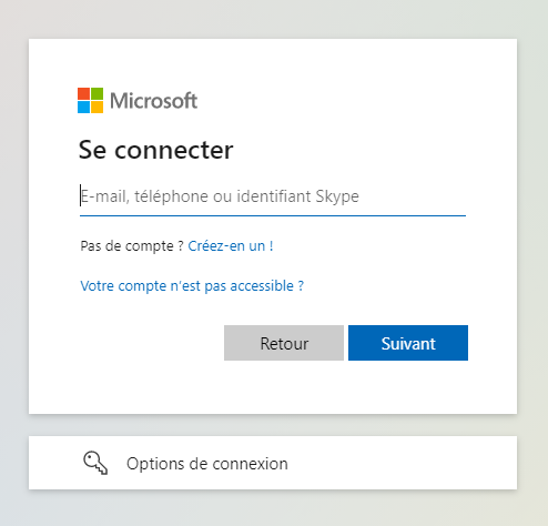 - Cliquer sur la cards Outlook puis sur Se Connecter avec Microsoft :
