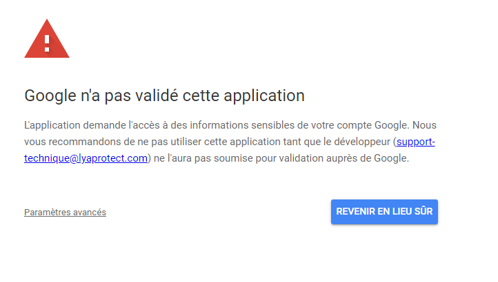 Il se peut qu'après avoir sélectionné votre mail, Google affiche ce message :
