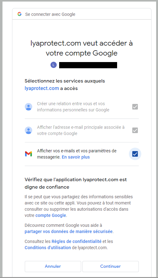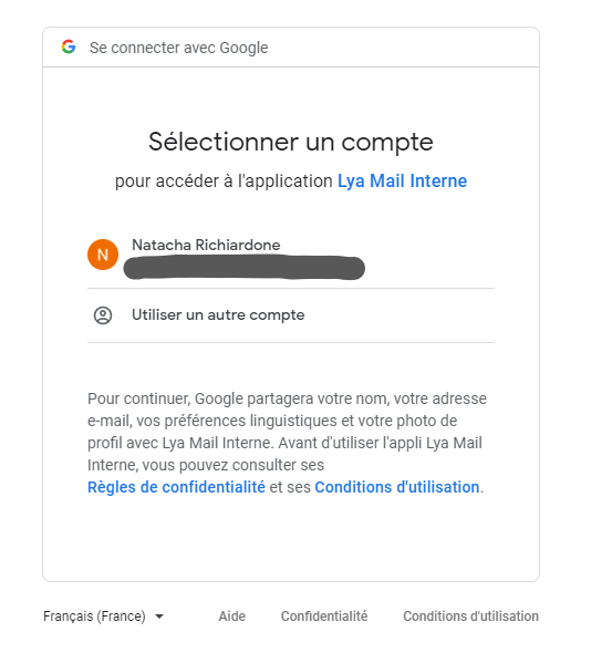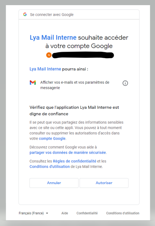 - Autoriser Lya Mail Interne à accèder à votre compte en cliquant sur Autoriser :