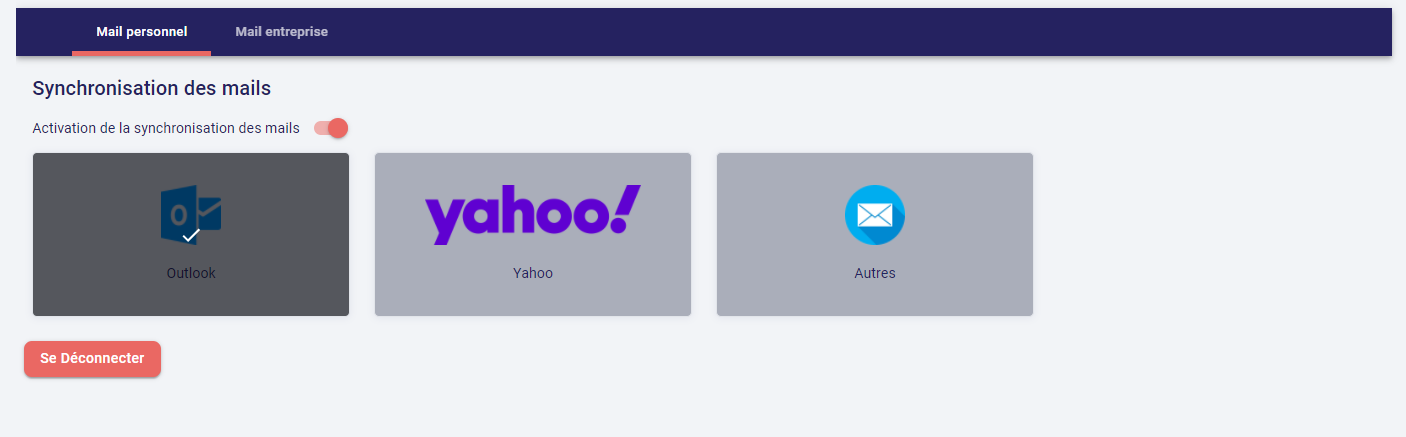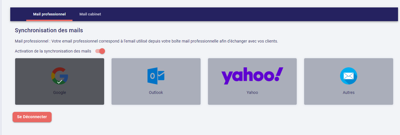 - Vous pouvez à tout moment déconnecter cette boîte mail en cliquant sur le bouton Se Déconnecter en bas à gauche.
