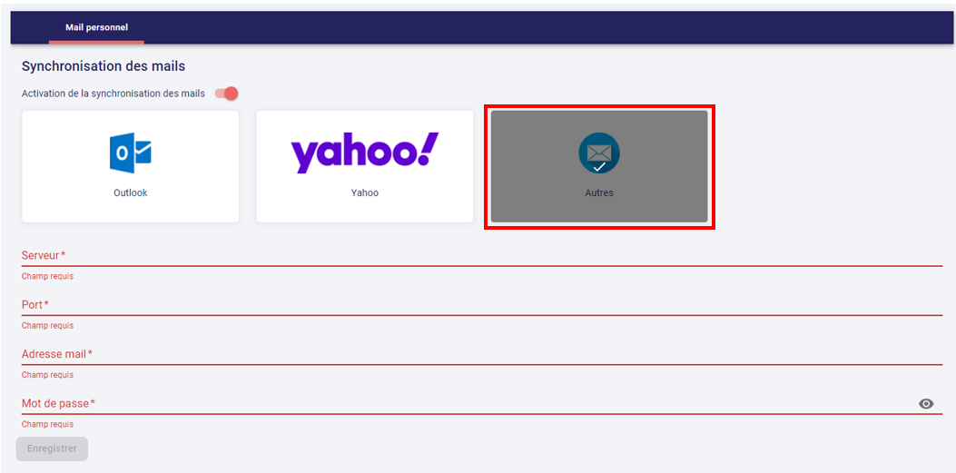 - Cliquer sur la cards Autres (ne comprend donc pas Outlook ni Google Mail ) :