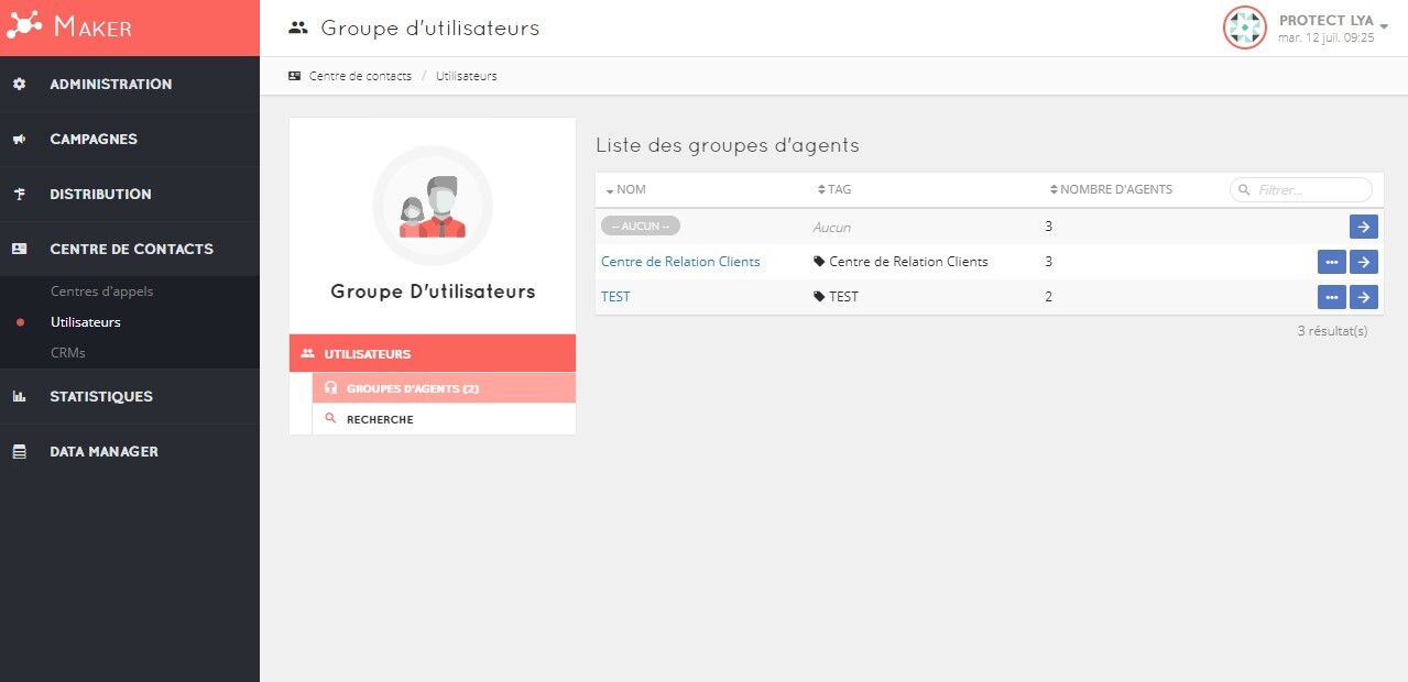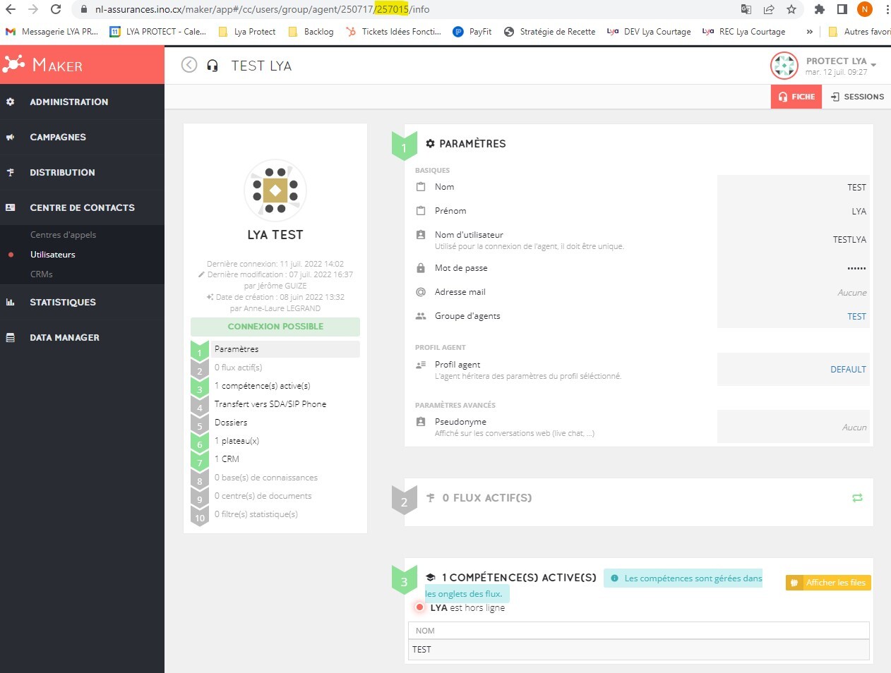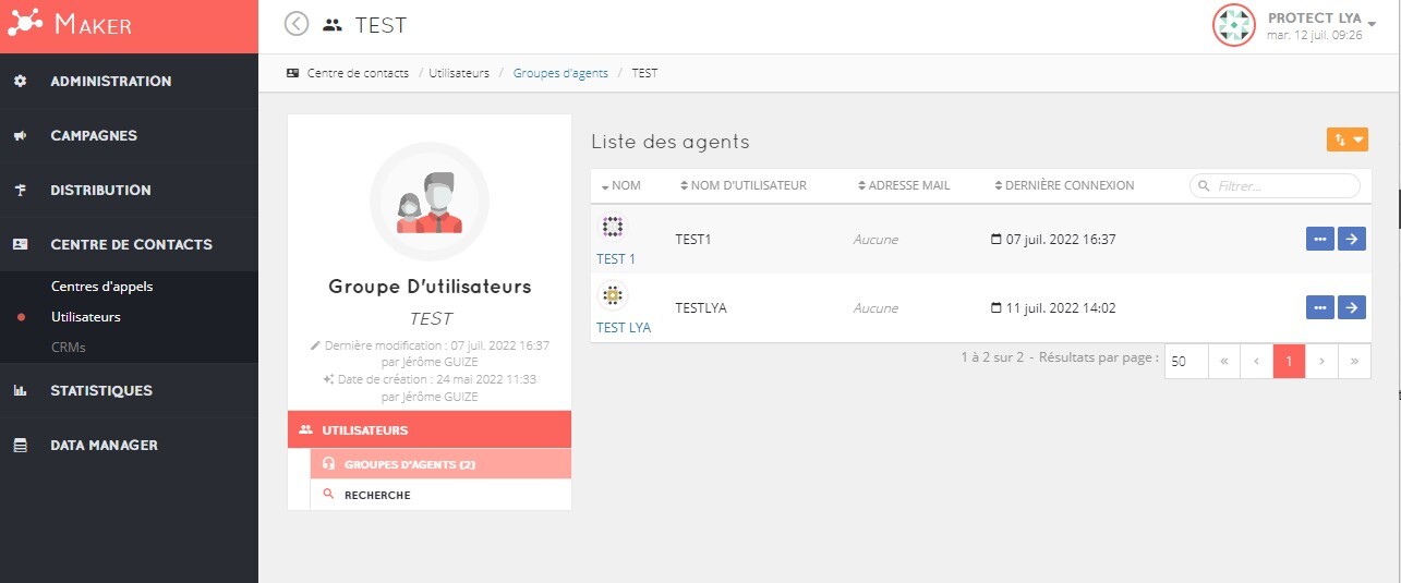 - Dans Ino CX > Menu Centre de contacts > Utilisateurs, récupérer les numéros d'agent :