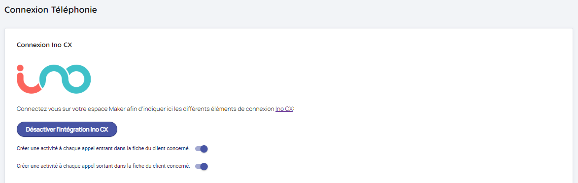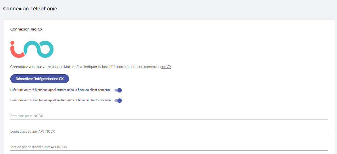 Etape 2 : Activer l'intégration Ino CX