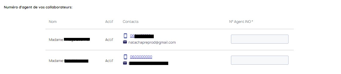 Etape 3 : Renseigner les numéros Agent INO