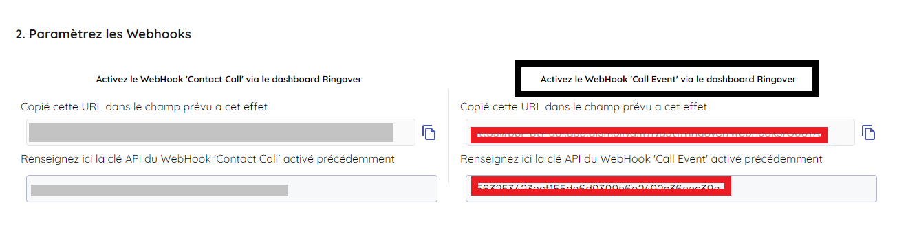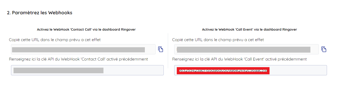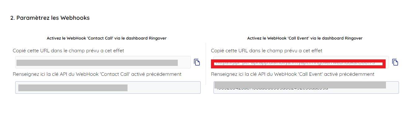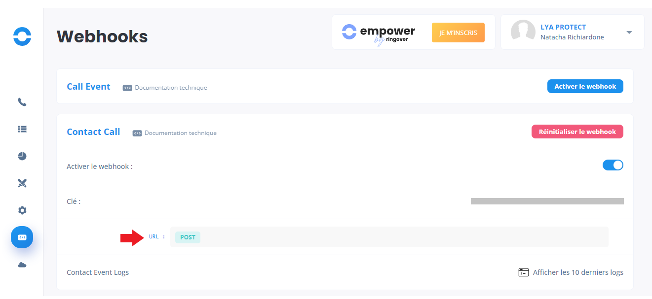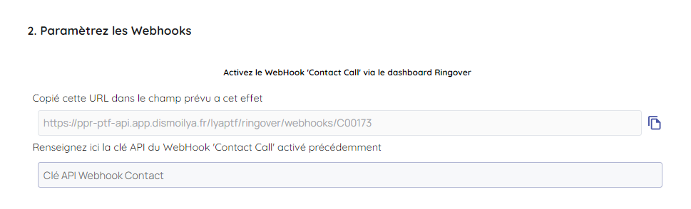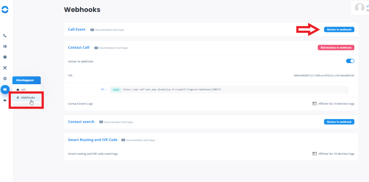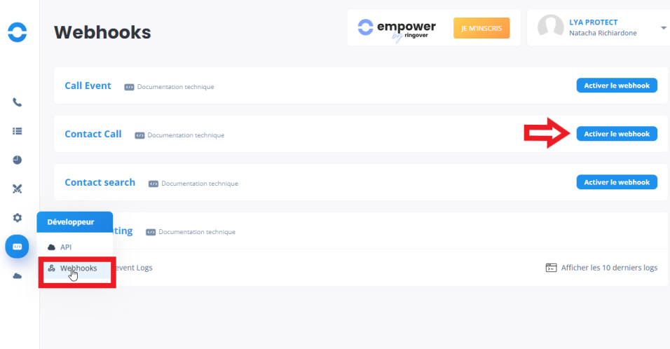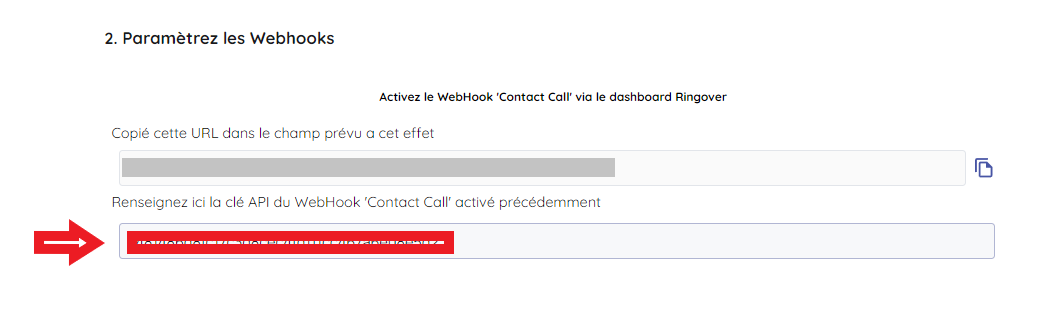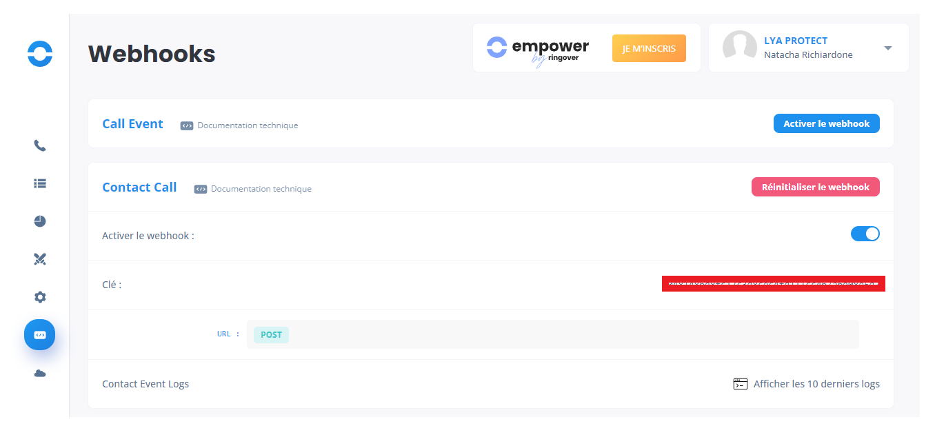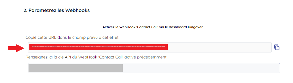 1/ Activer le webhook 'Contact call' via Ringover ici :