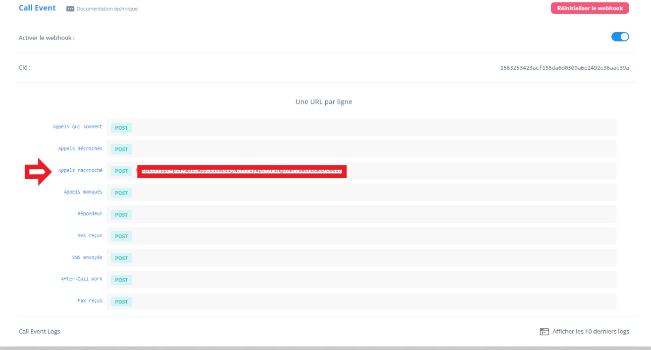 - Paramétrer les webhooks de Call event