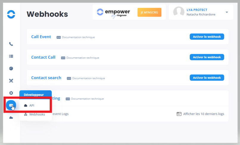 1/ Activer le webhook 'Call Event' via Ringover ici :